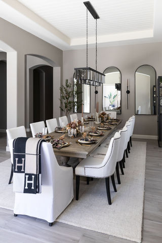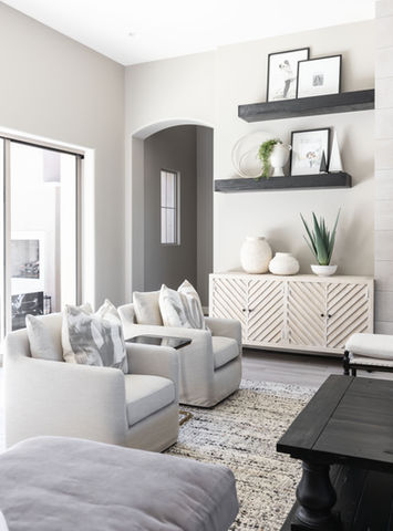 Scottsdale, Arizona is where this gorgeous home was located in the desert Mountains. Client reached out for our full home furnishing and styling refresh and we were able to take this home to the net level. Adding new Lighting, Dining Chairs, Counter Stools, Sideboards, Artwork throughout, new Master Bedroom furnishings + an adorable nursery with added wainscoting and wallpaper details. The luxury draperies add warmth and add a completed look for the rooms and are a must for any rooms we create!